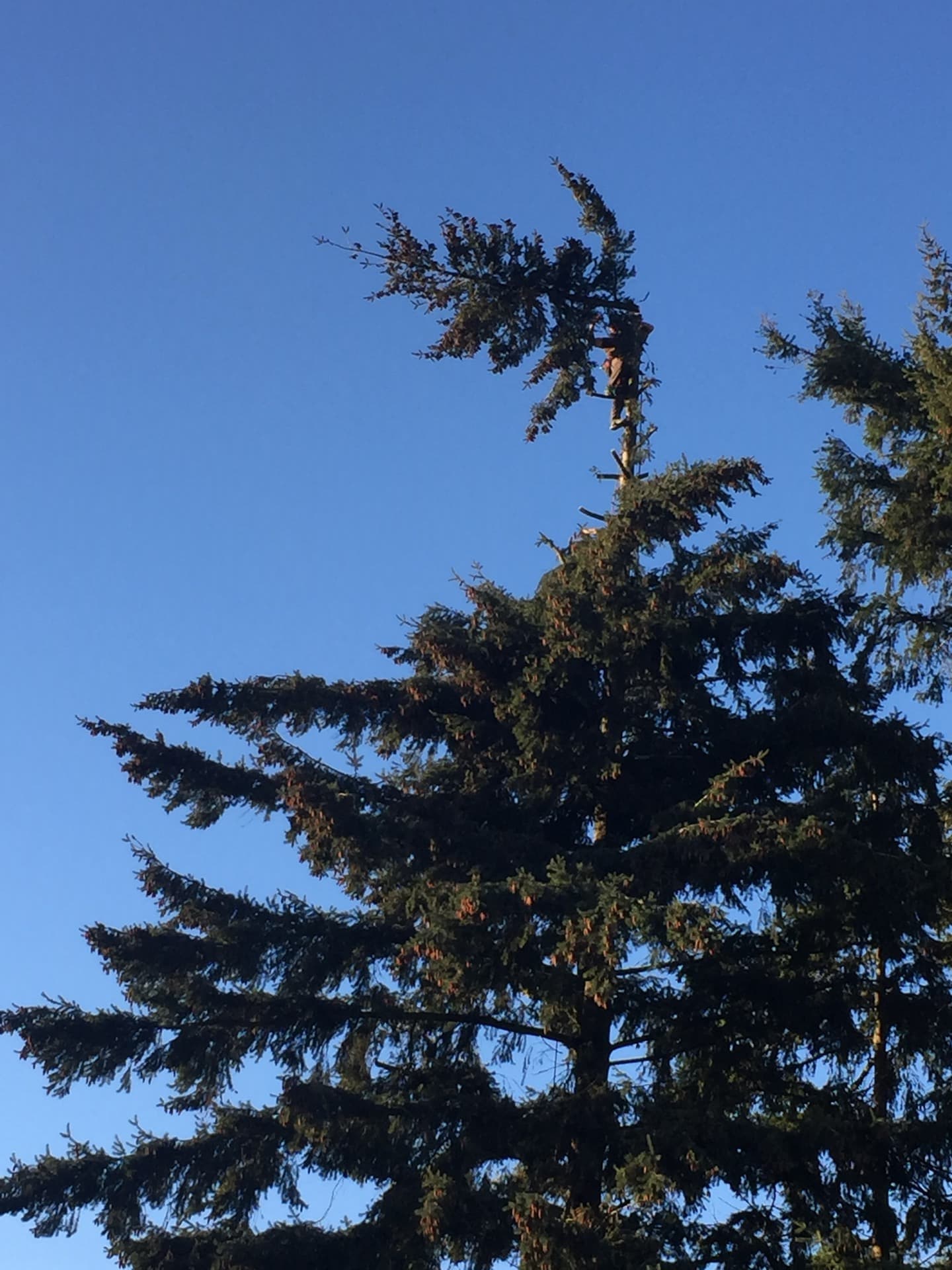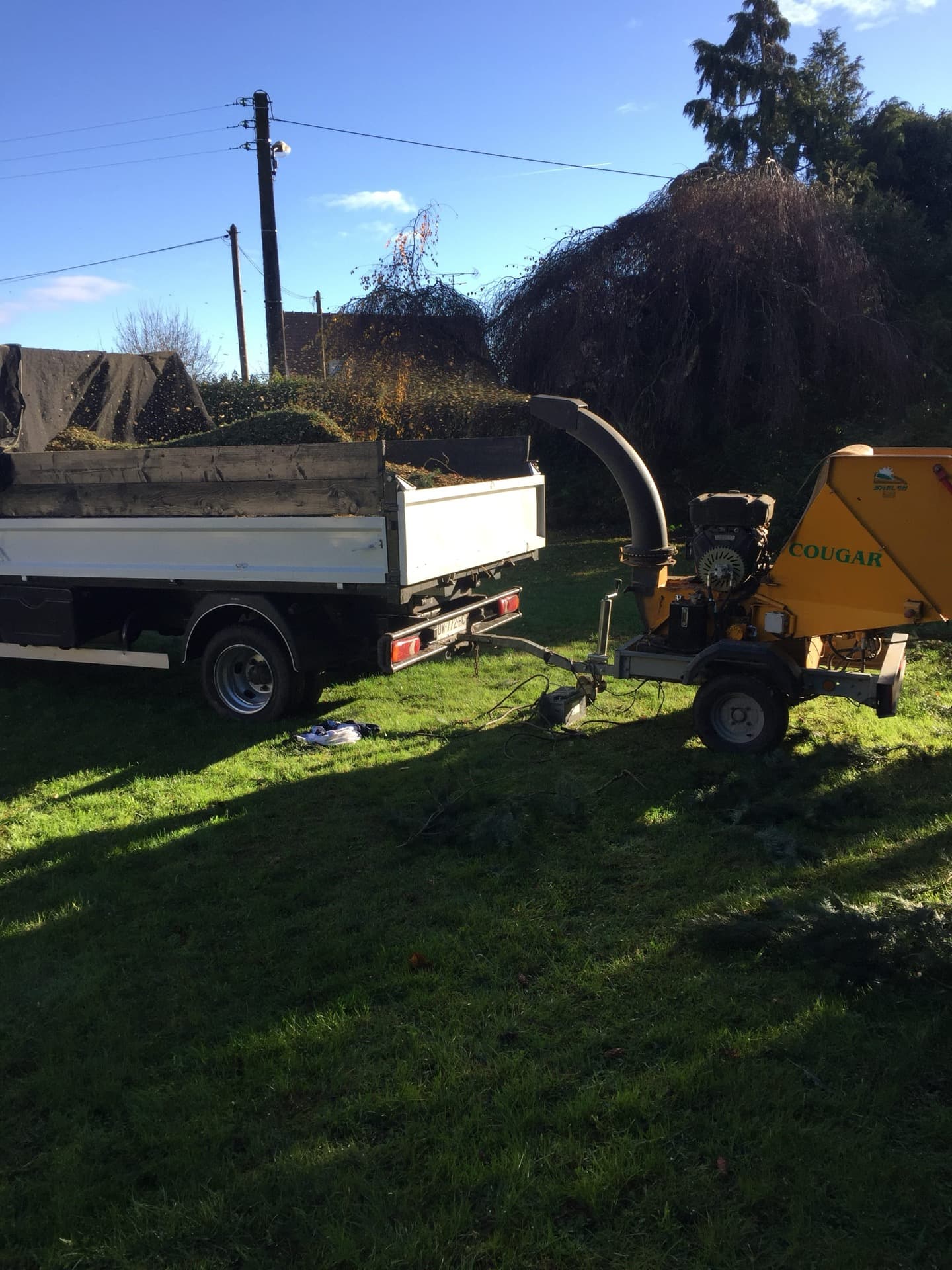 Nous avons effectué l'étêtage d'un sapin et procédé au broyage des déchets végétaux.